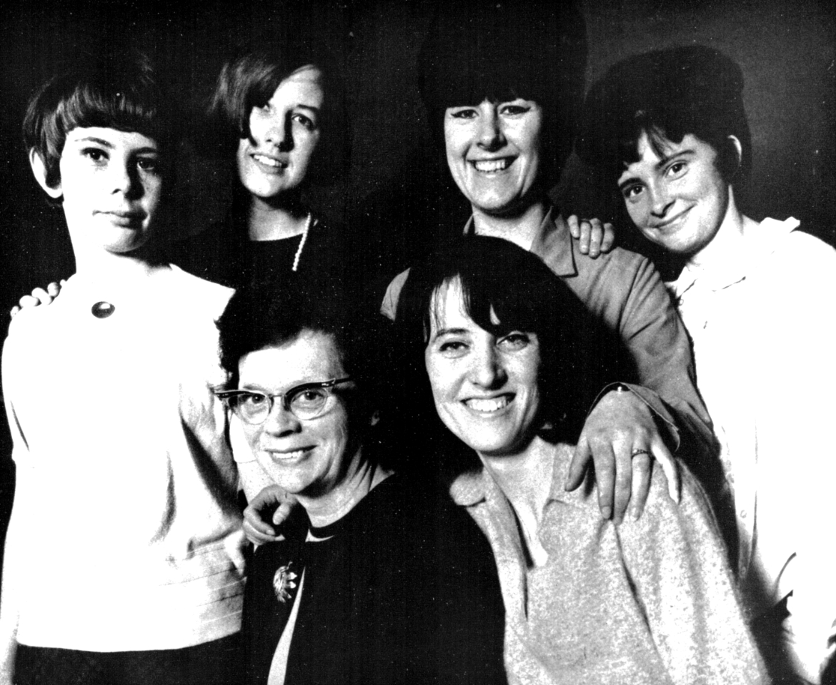 These six happy faces (well, Lynda on the left maybe thought it looked more sophisticated not to smile) belong to the girls in the duplicating section at Television House.