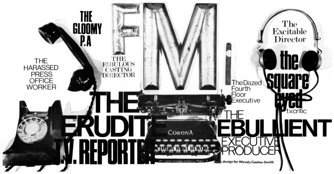 Once a professor of economics, he found life too dull and came into independent television as soon as it started, rising rapidly. His alert brain, always full of new and unusual ideas (not always practical) makes him n welcome member at any committee meeting. His mannerism of running his hand through his hair before any startling idea, has been copied by young up-and-coming executive producers. Full of life, his office chair is rarely sat in – he prefers to prowl round it, and is more likely to be found anywhere in the building, or, failing that, at Wembley. He spends his weekends and holidays motor racing in vintage Bentleys when he is not catching butterflies.